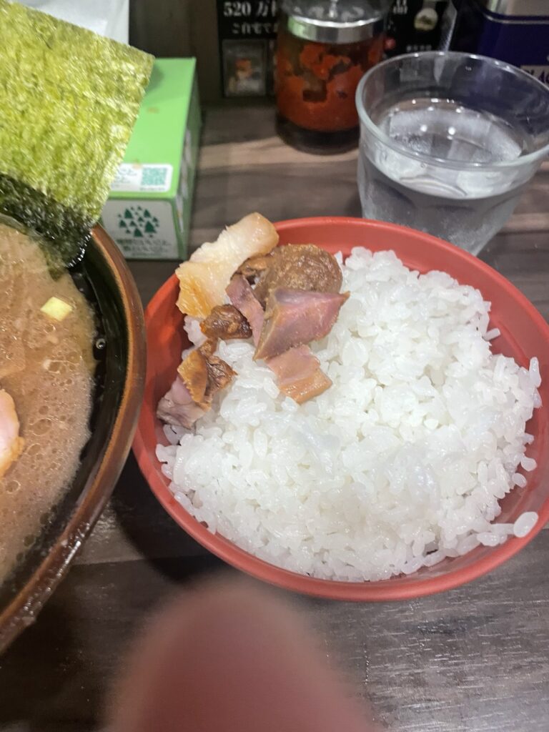 公式サイトによると、白ご飯は必須。店舗でも9割のお客様が注文するとの事で、スープに浸した海苔でご飯を巻いて食べるのは超オススメです。らしいです。