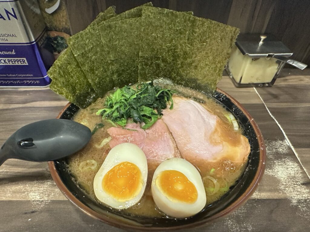 さらに、ニンニクと豆板醤という家系ラーメンに欠かせないトッピングもあります。もちろん1回、トッピングします。家系ラーメンにはニンニクが欠かせません。それゆえ、次の日に誰も会わない土曜日に食べるのです。